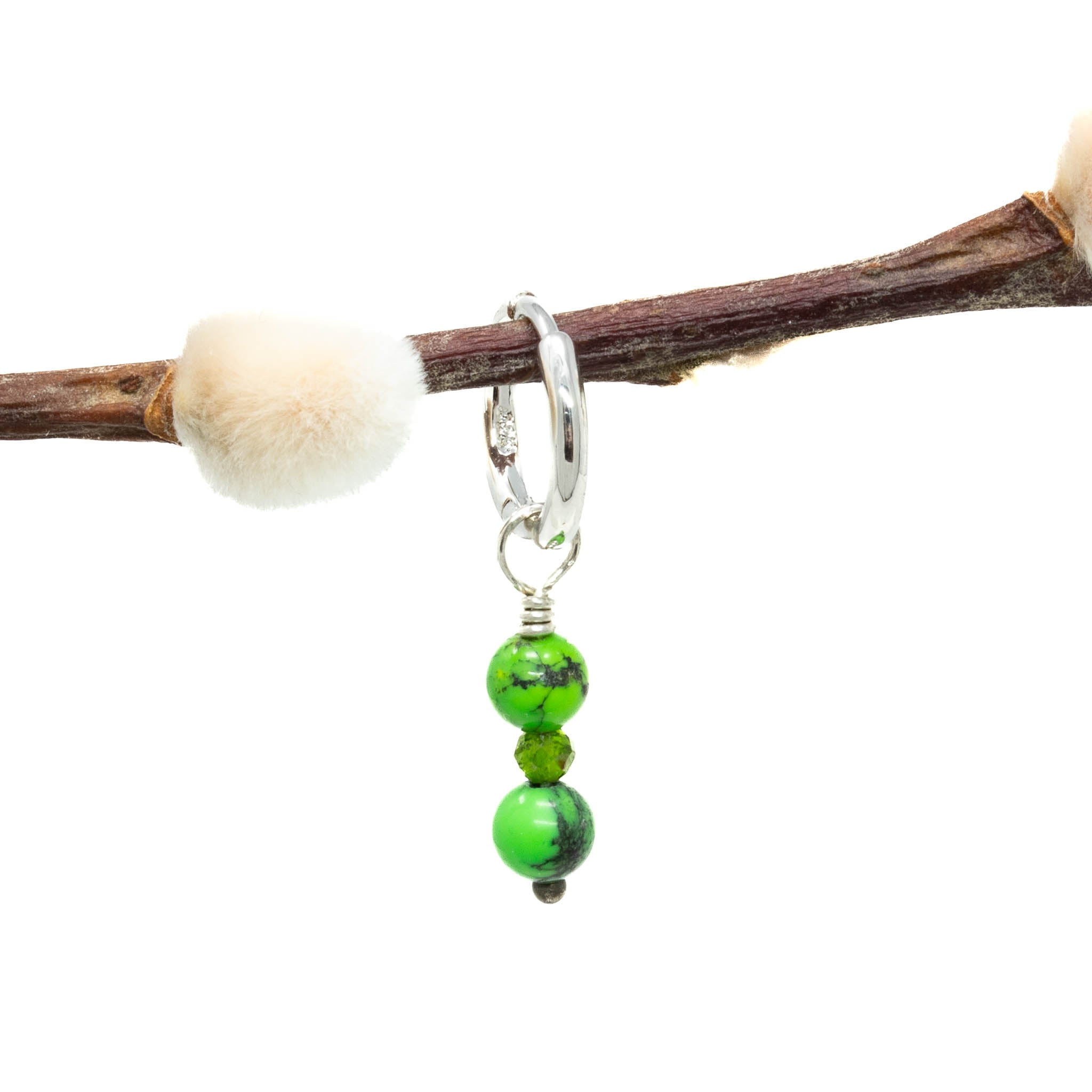 Earring Charm with Green Turquoise and Diopside Gemstones