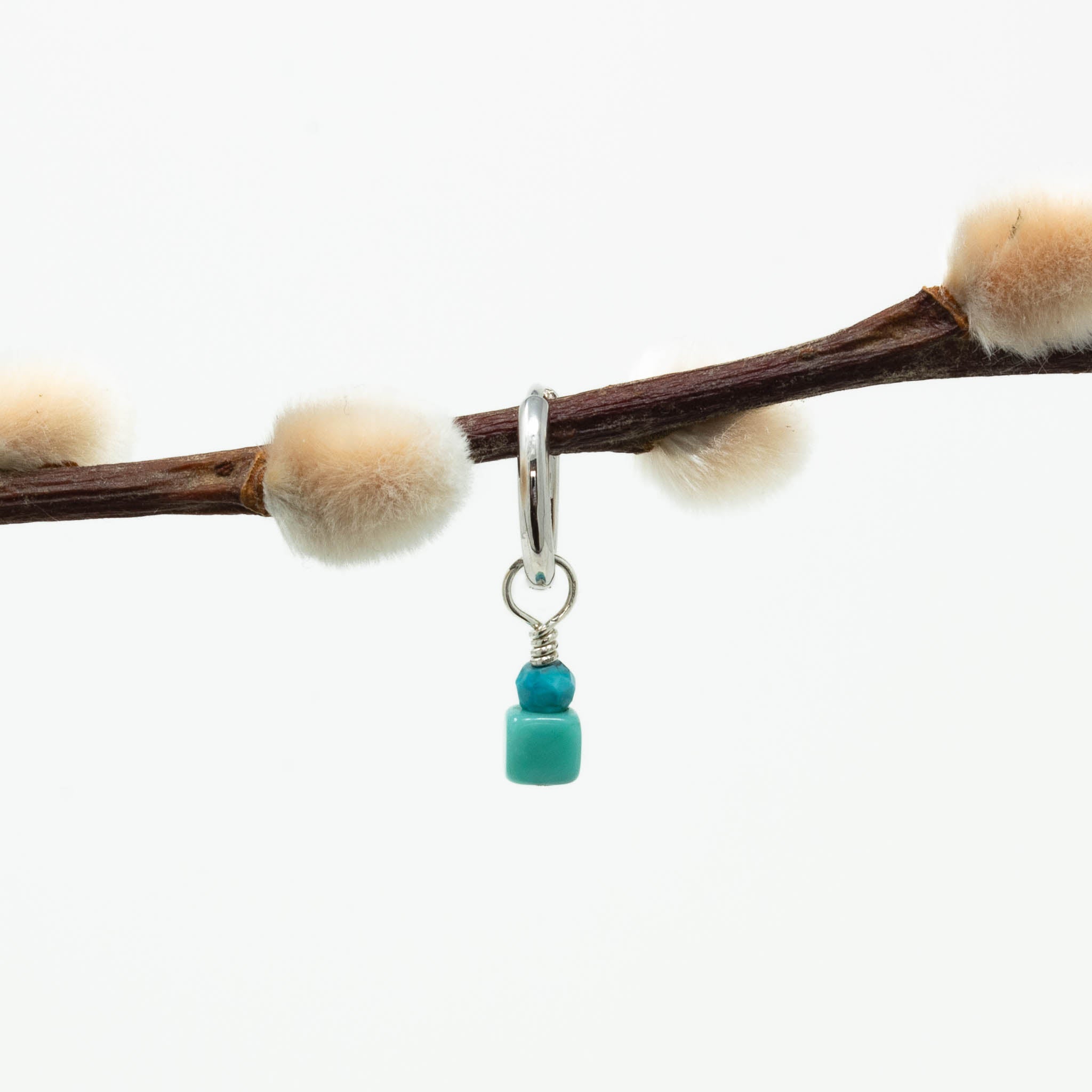 Our earring charms are an easy and fun way to personalize your unique look. Be playful and let this faceted and cube turquoise gemstone charm harmonize your look with stylish fun. Our wide selection of charms can be easily swapped to set the tone for your mood and outfit.