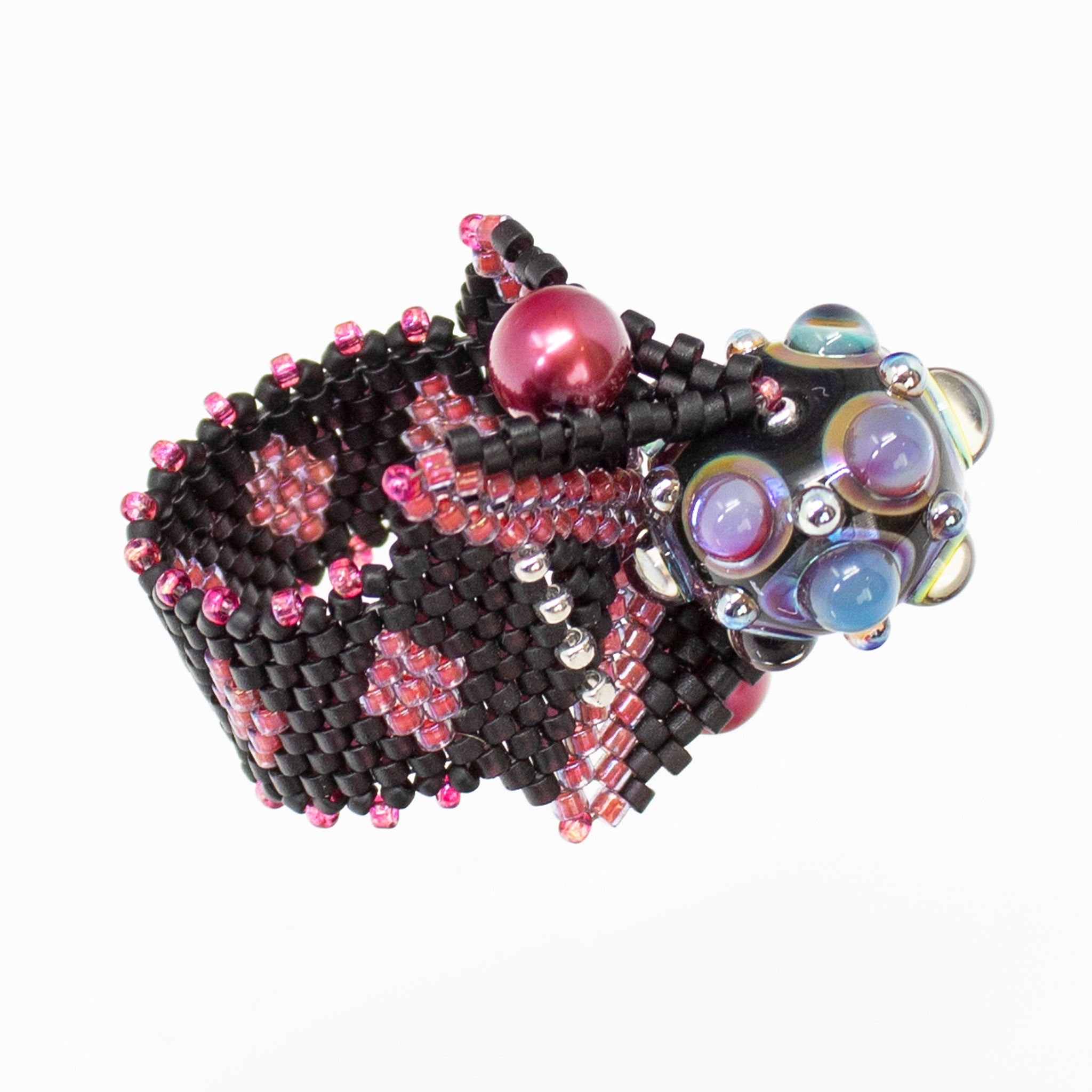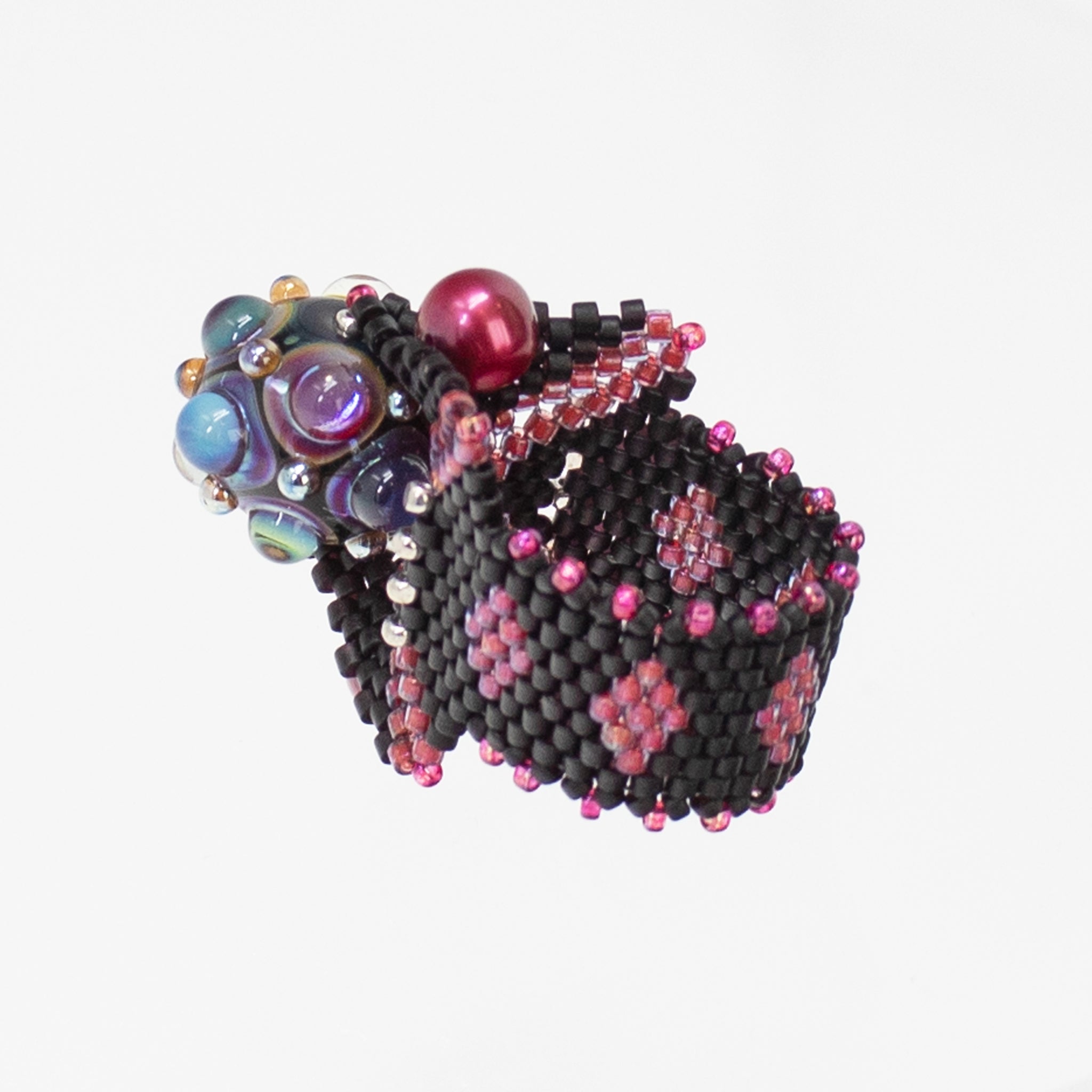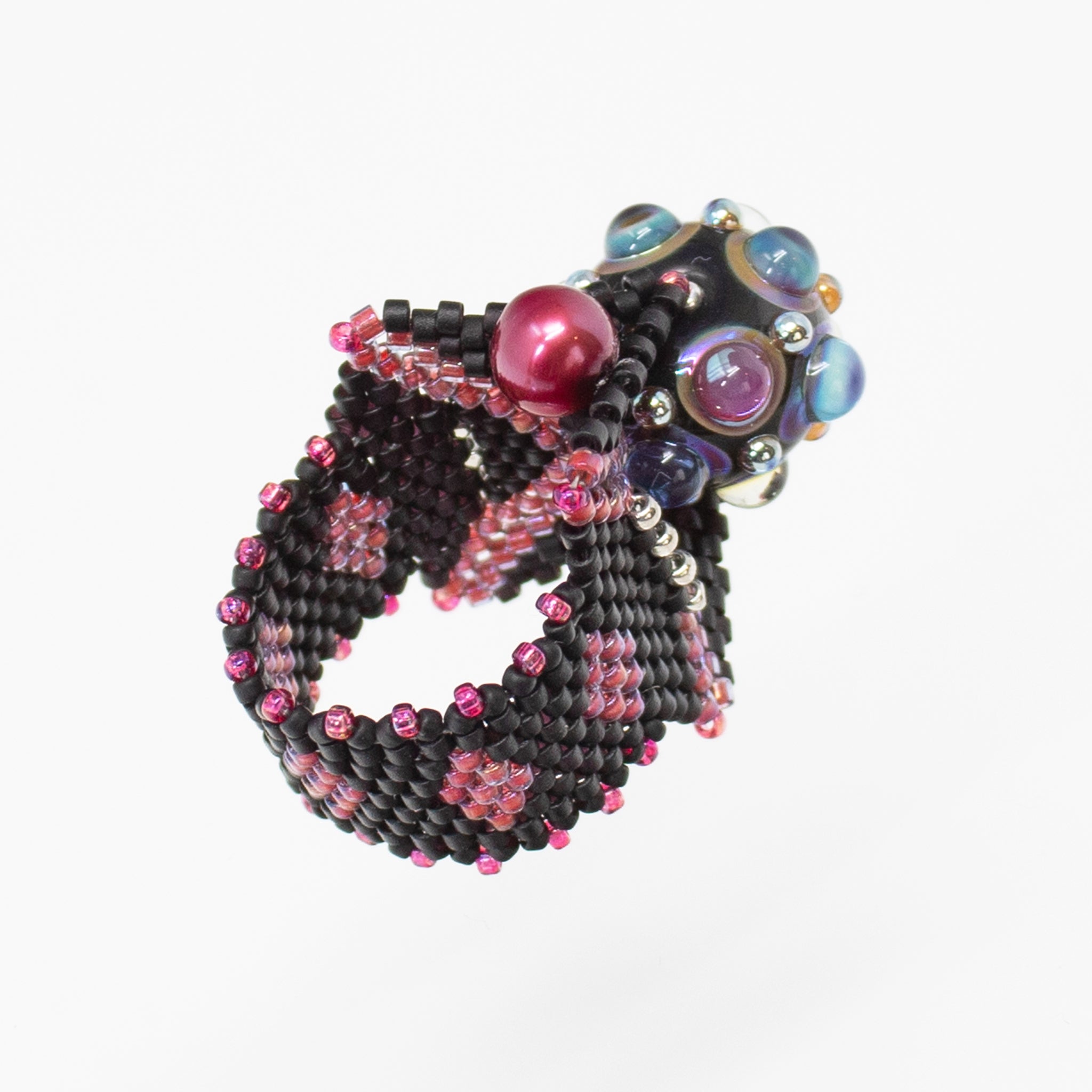 Woven Bead Cocktail Ring with Artist Glass Focal